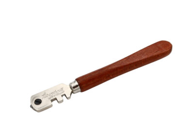 Coupe-verre Silberschnitt avec manche en bois laqué, six meules en acier inoxydable dans une rosette nickelée. Convient à la coupe générale du verre et est utilisé par presque tous les vitriers. Découvrez également nos autres coupe-verres.