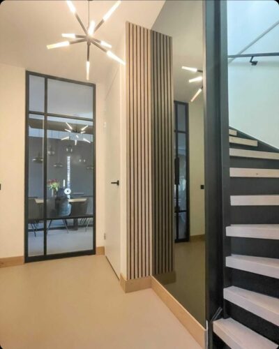 Vous trouverez ci-dessous un bel exemple d’utilisation d’un miroir coloré pour la rénovation d’un palier :