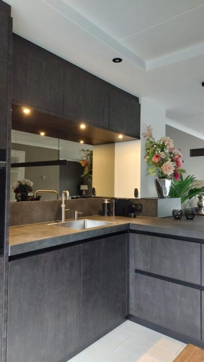 - Placez des miroirs séparés sur le mur arrière de la cuisine